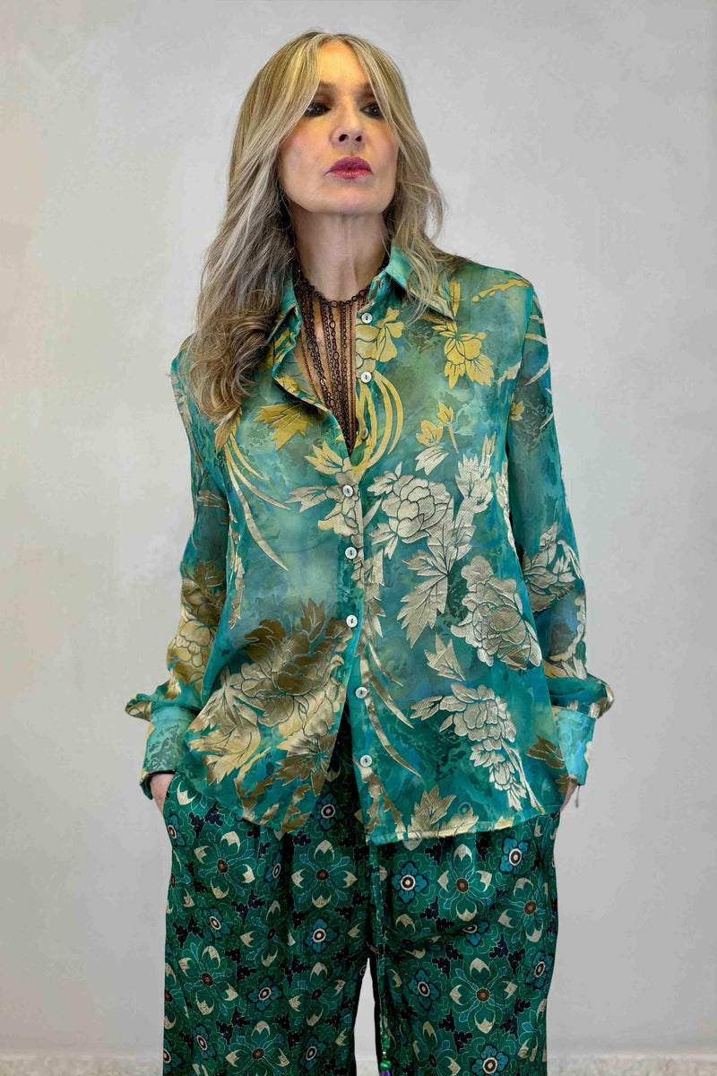 Camicia dévoré floreale in viscosa