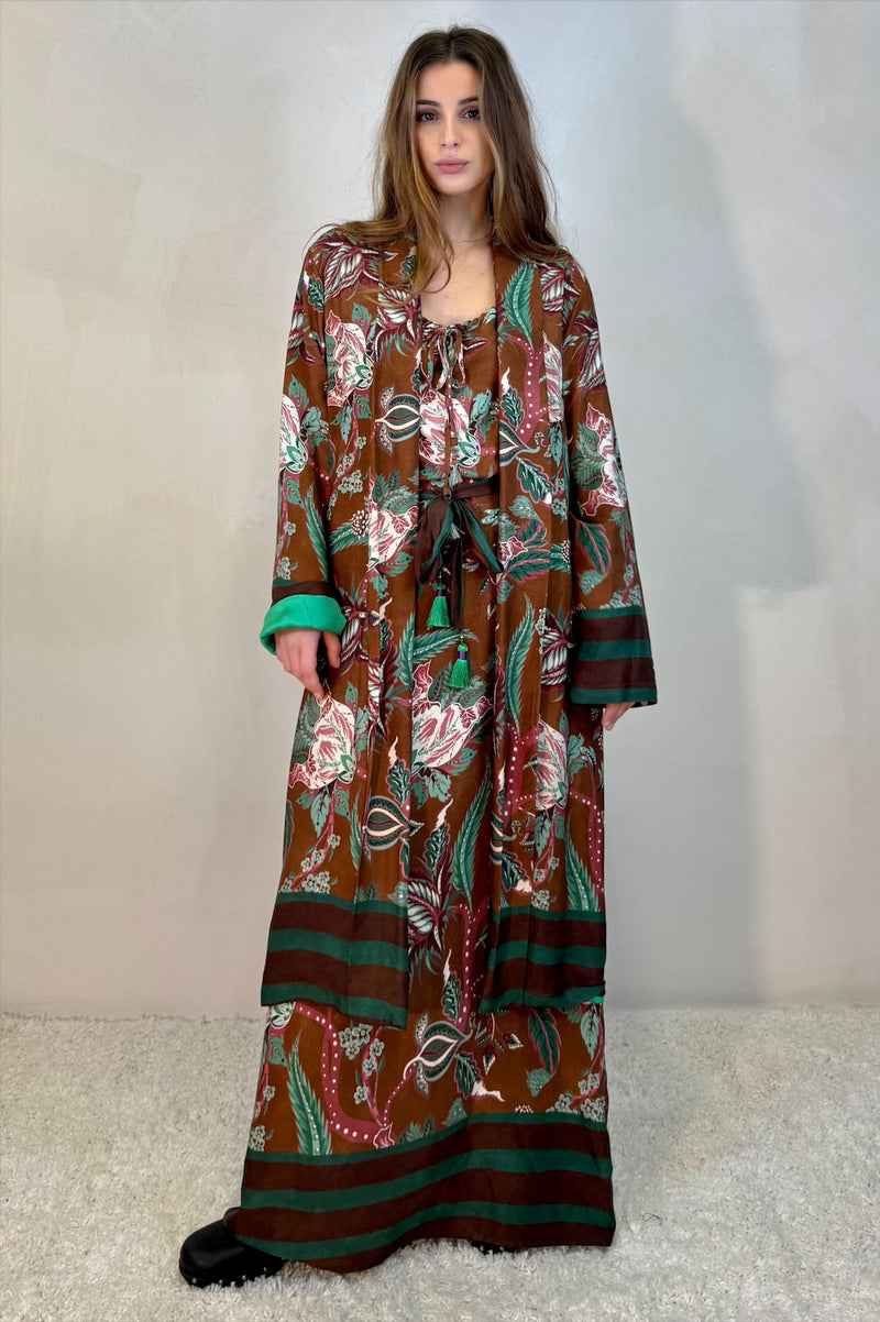 Kimono lungo in morbida viscosa foderata.